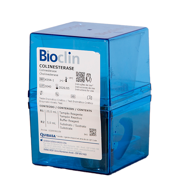 Método para a determinação da atividade de Colinesterase em amostras biológicas de soro ou plasma (EDTA ou Heparina). Teste enzimático cinético, somente para uso diagnóstico in vitro.